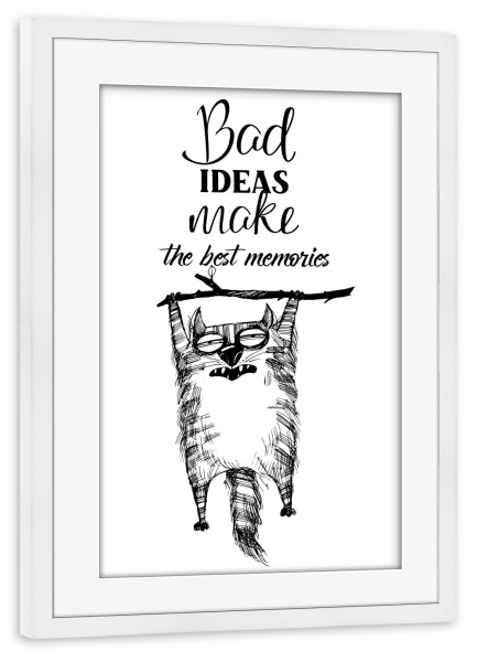 Poster mit Rahmen weiß "Best ideas make the best memorias" artboxONE - Typografie,Tiere,Schwarzweiß