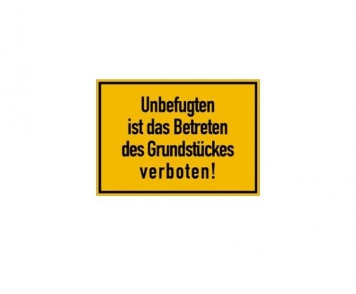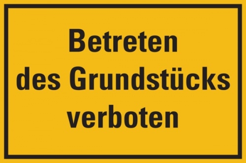 Verbotsschild: Betreten des Grundstücks verboten, gelb, 250x150mm, Hinweisschild