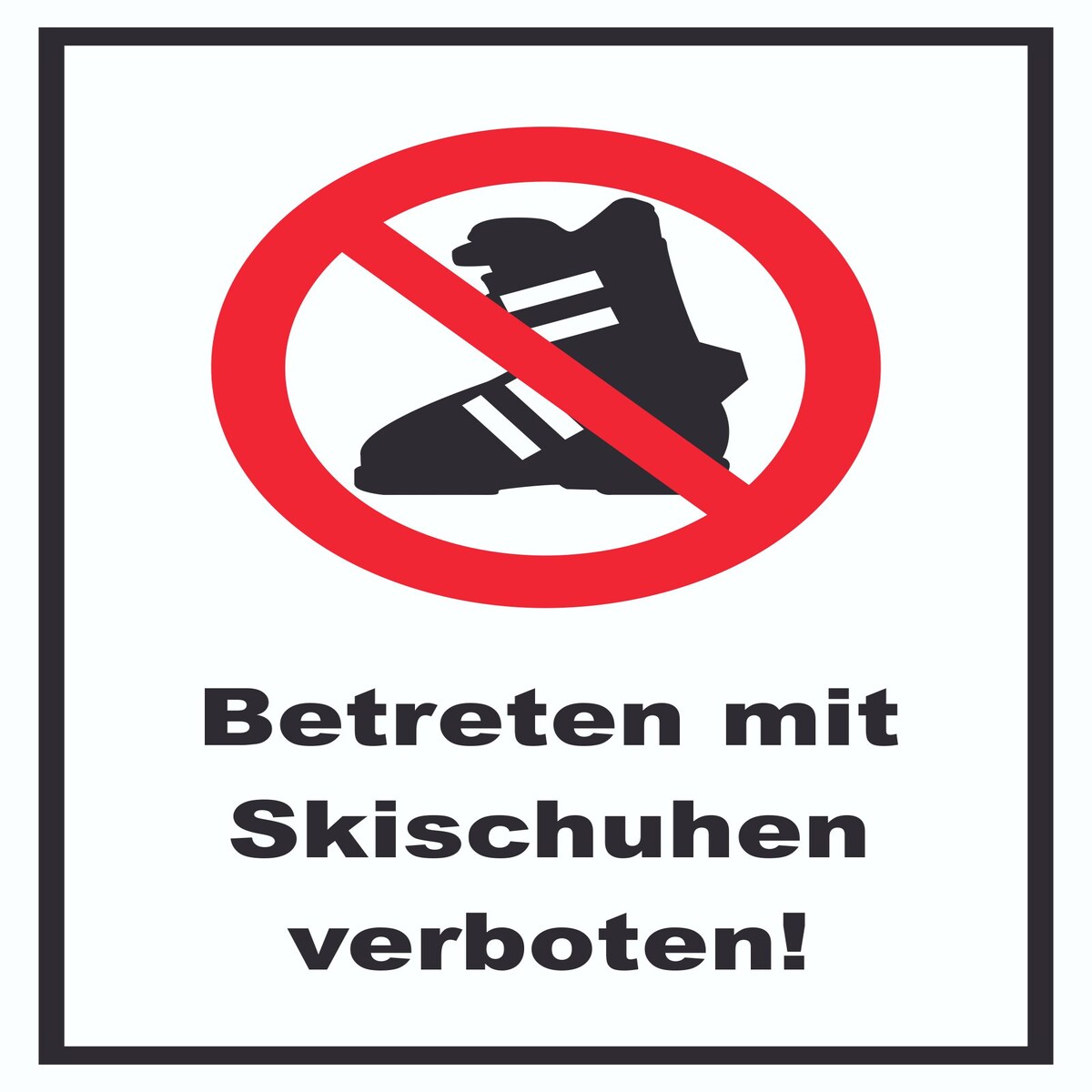 Betreten mit Skischuhen verboten! Schild A0 Rückseite selbstklebend