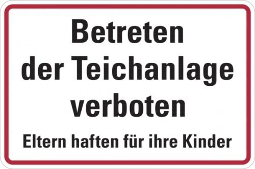 Hinweisschild, Betreten der Teichanlage verboten, 200 x 300 mm, Aluminium - 300x200x0.45 mm Aluminium geprägt