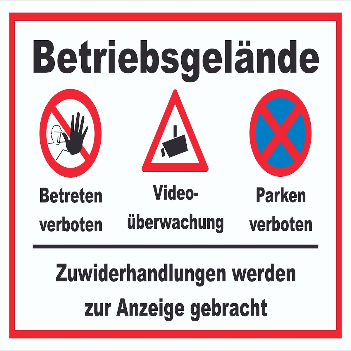 Schild Betriebsgelände Betreten Video Parken A4 Rückseite selbstklebend