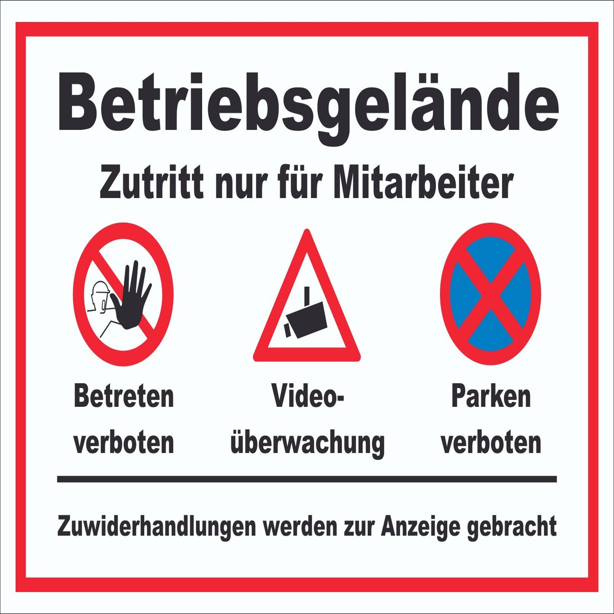 Schild Betriebsgelände Mitarbeiter Betreten Video Parken A0 Rückseite selbstklebend