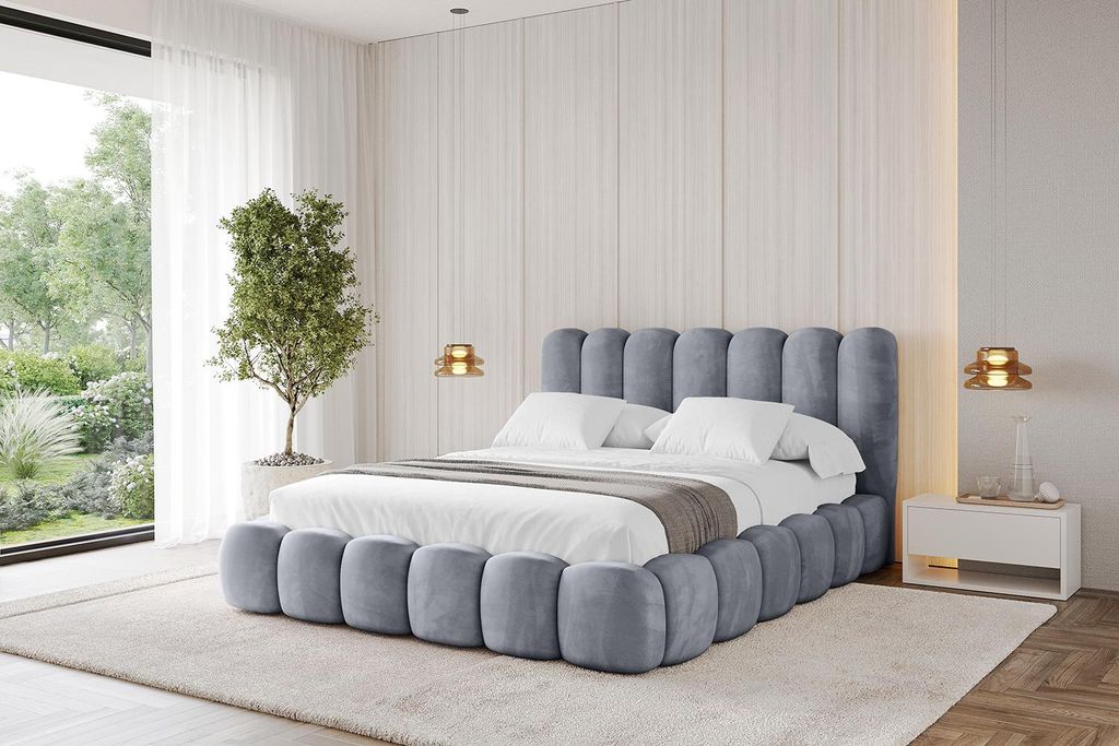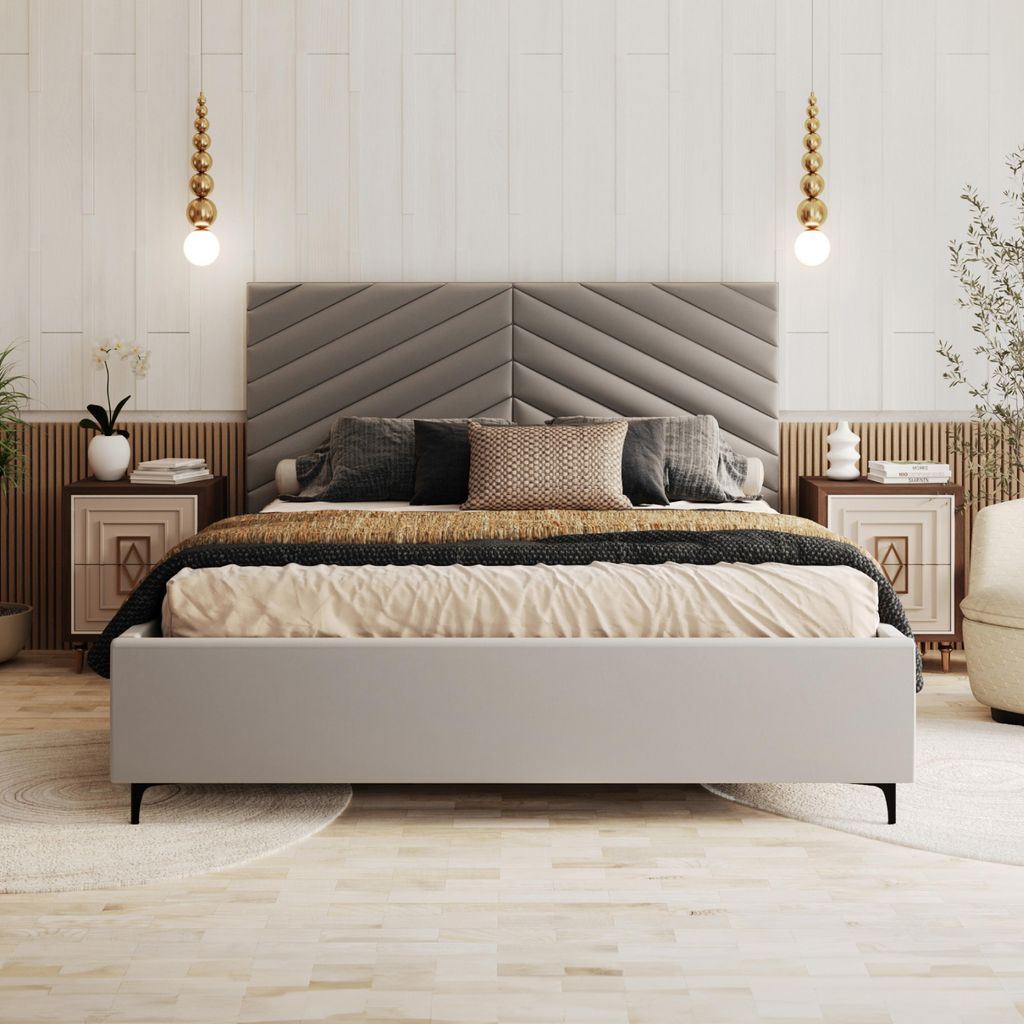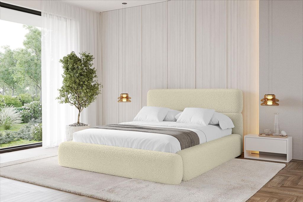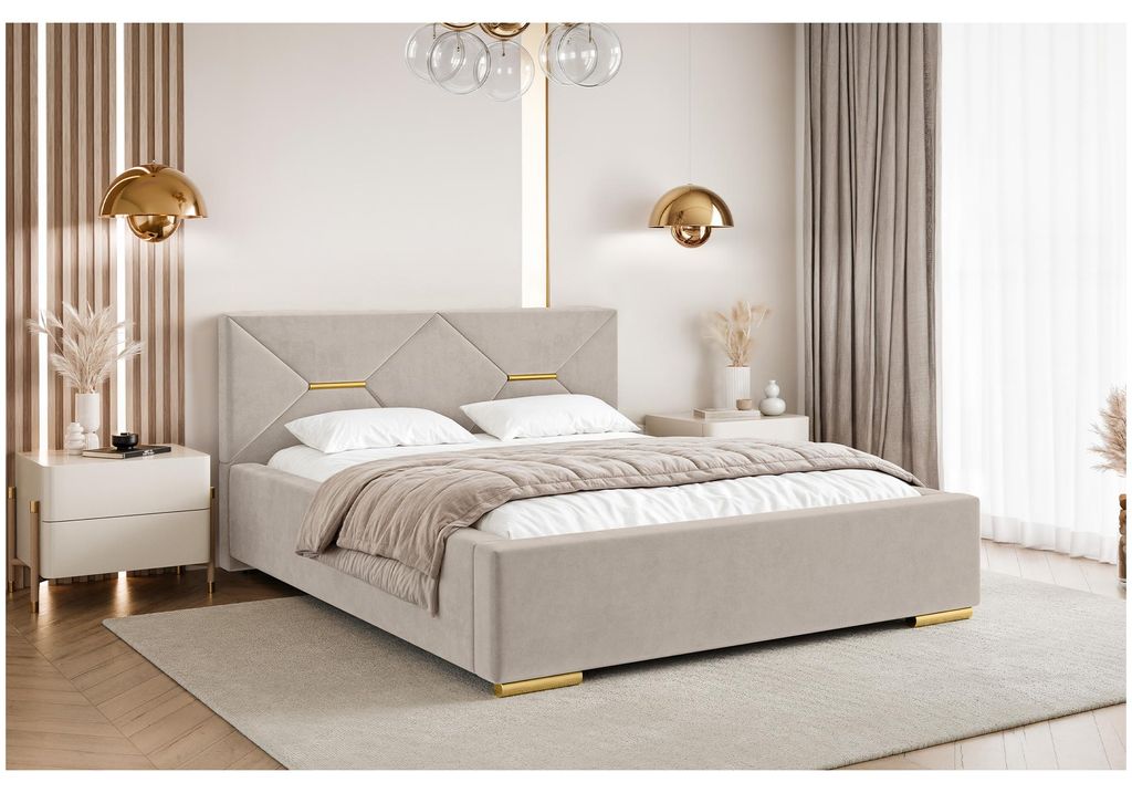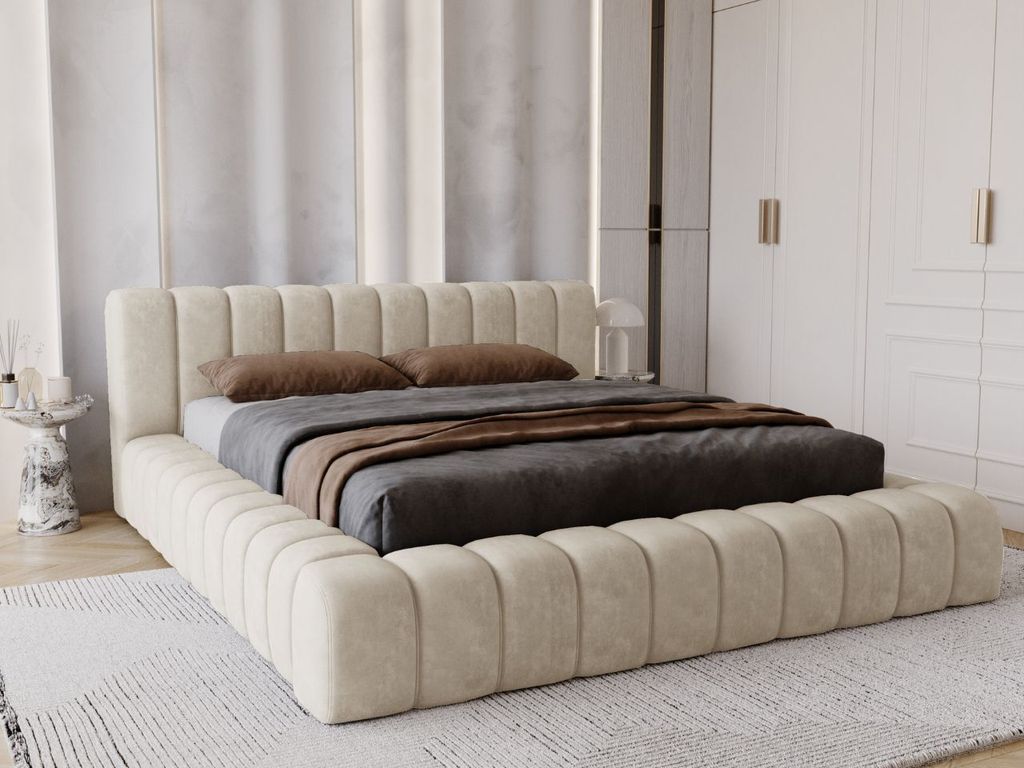 MKS MEBLE Doppelbett Polsterbett EMORA CLASSIC Bett Holzgestell hohes Kopfteil 180x200 Beige Strukture