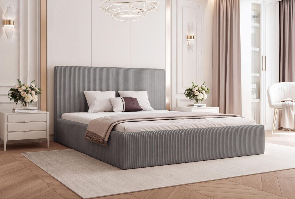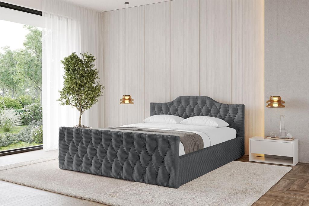 ALTDECOR Polsterbett mit Bettkasten - ALOVA-Z - 180x200 Cord - Dunkelgrau - Bett mit Matratze H3/H4, Kopfteil und Fußteil, Boxbett, Doppelbett mit...