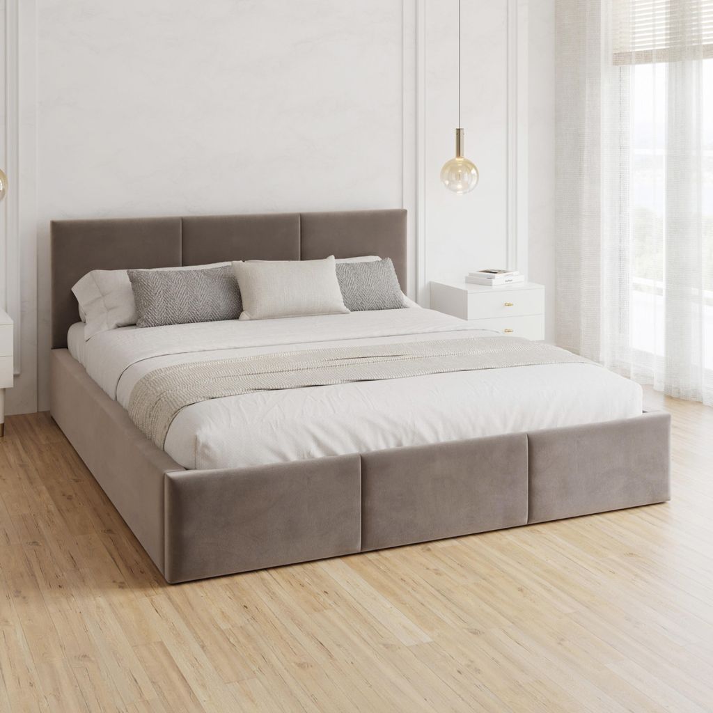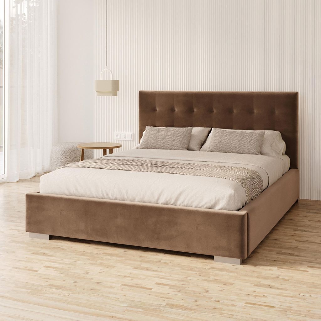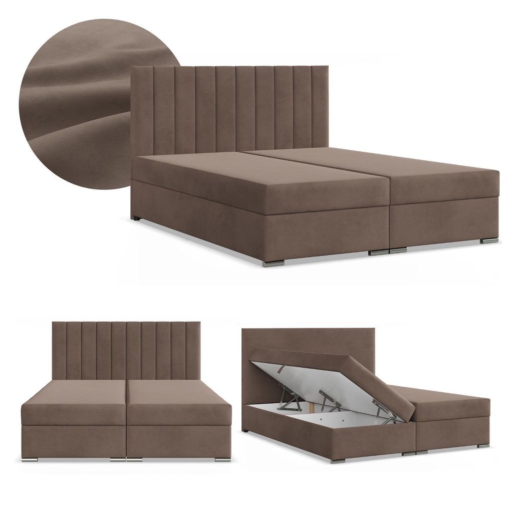 FDM Bett GRACE Trinity 180x200 cm Polsterbett mit Lattenrost aus Metall Bettkasten Stauraumbett Samt braun