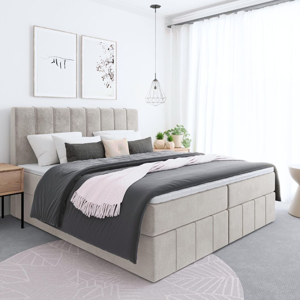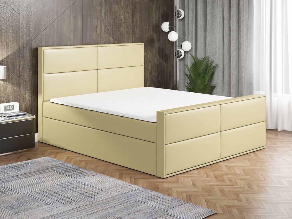 Emoebel24 Boxspringbett mit Topper und 2 Bettkasten, Polsterbett, Doppelbett 180x200 cm Bett Jerry Beige