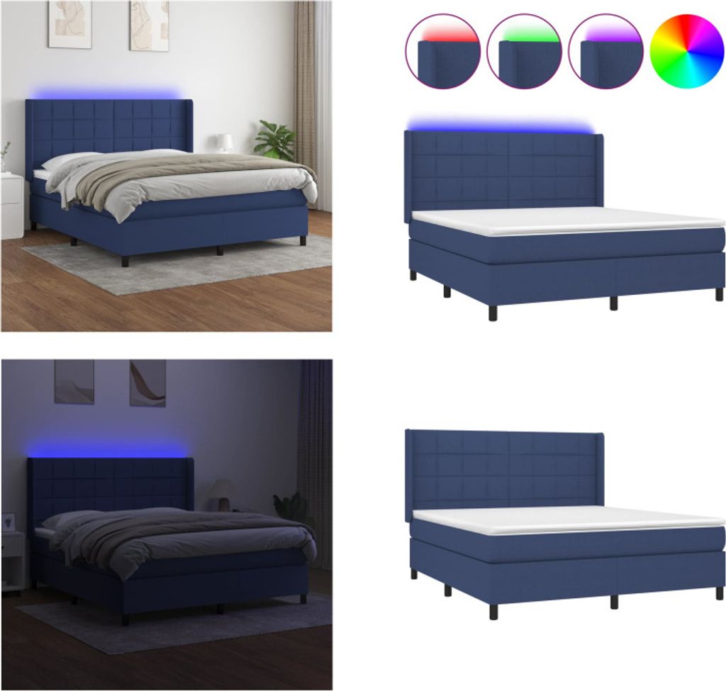 vidaXL Boxspringbett mit Matratze & LED Blau 180x200 cm Stoff - Boxspringbett - Boxspringbetten - Bett - Schlafzimmermöbel