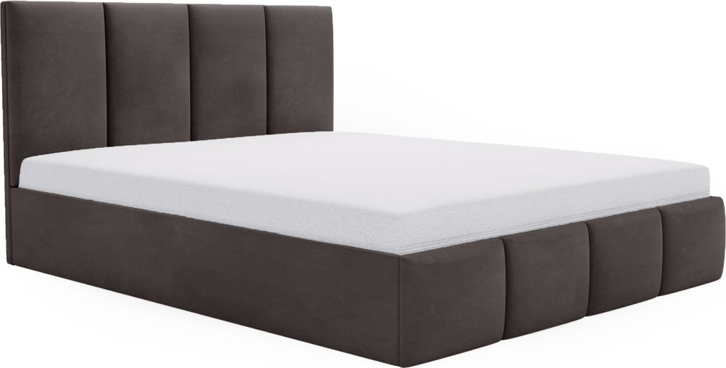 Polsterbett Aura 180x200 cm, Bett mit Kopfteil, Doppelbett mit Bettkasten und Lattenrost aus Holz, Velourstoff: Dunkelbraun