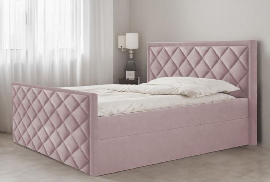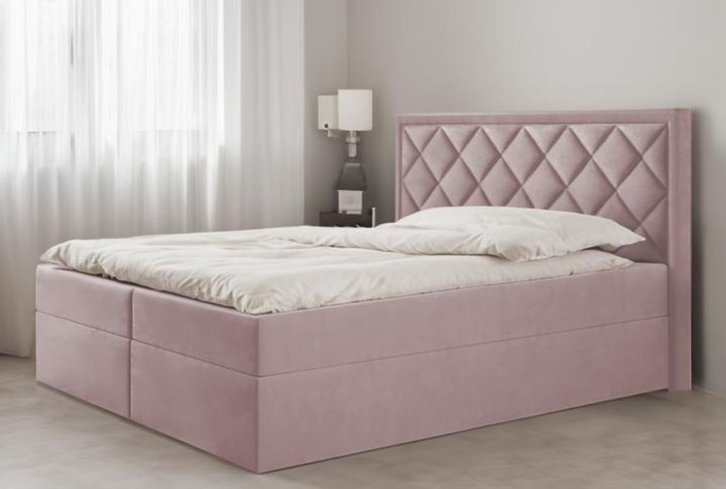 Bett, Boxspringbett DORMI, OHNE Topper, Federkern, Doppelbett, Stauraum, 180x200 cm, (Rosa - Itaka 38)