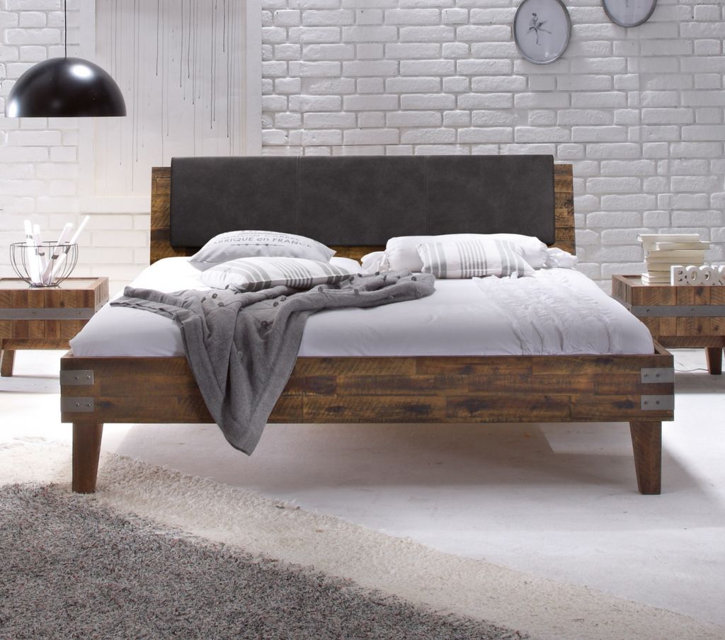 MASSIVMOEBEL24 Bett Altholz 180x200 mehrfarbig lackiert INDUSTRIAL #108