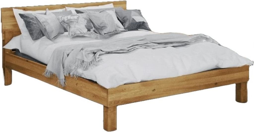 Bett Ringo 1 aus Wildeiche massiv 180x200 mit Holzkopfteil und Holzbeinen