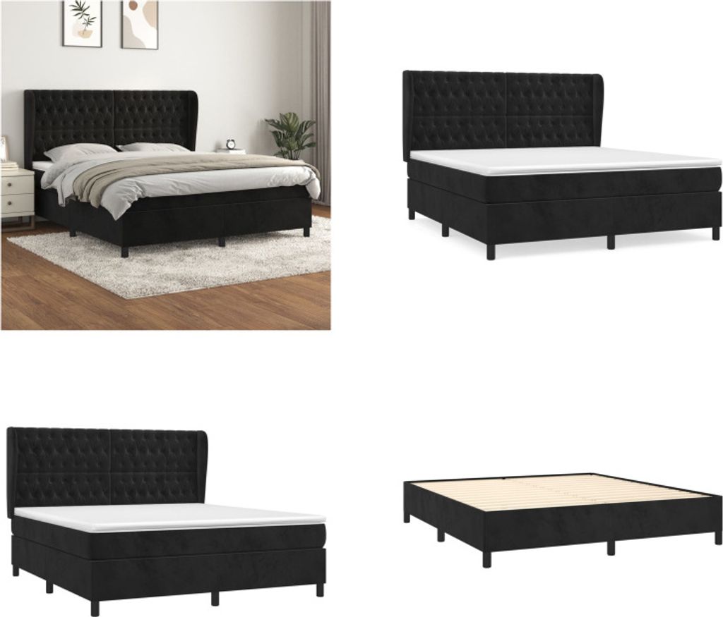 vidaXL Boxspringbett mit Matratze Schwarz 180x200 cm Samt - Boxspringbett - Boxspringbetten - Bett - Schlafzimmermöbel