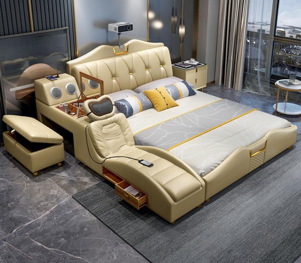 Design Bett Beige Hotel Polster 180x200 Multifunktion Regal Betten Neu