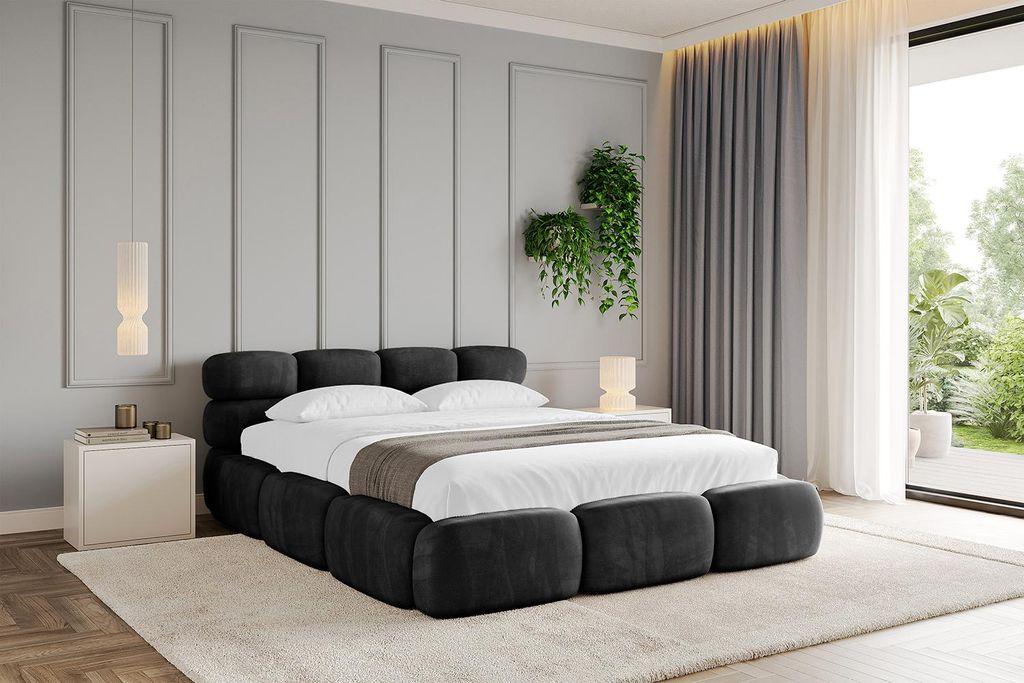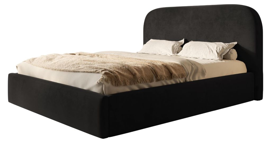 Bett Verona 180x200, Bettkasten und Metallrahmen, Amor-Samtstoff, Schwarz