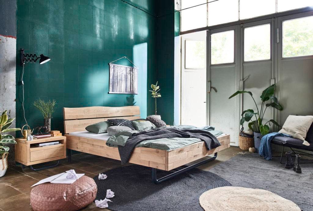 Bett Antwerpen 180x200 cm Wildeiche Massiv mit Holzkopfteil Natur