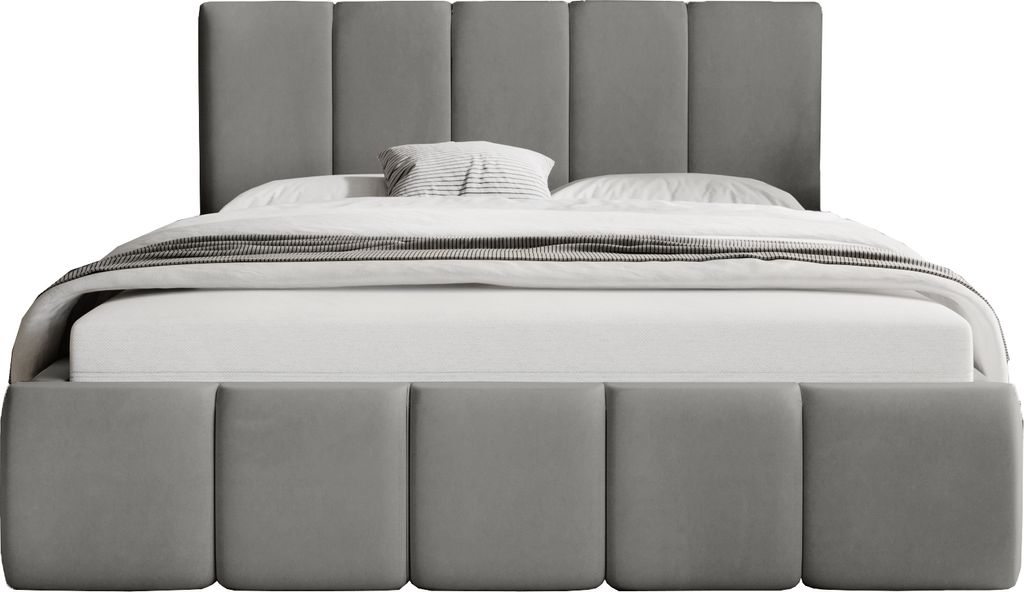 FDM Bett MISTERO Paris 180x200 cm Polsterbett mit Lattenrost aus Metall Bettkasten Stauraumbett Samt grey