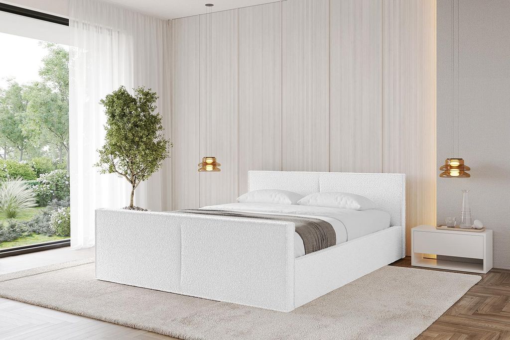 ALTDECOR Polsterbett mit Bettkasten - EMMI-Z-v1 - 180x200 Weiß - Bett mit Kopfteil und Fußteil, Boxbett ohne Matratze, Doppelbett mit Stauraum