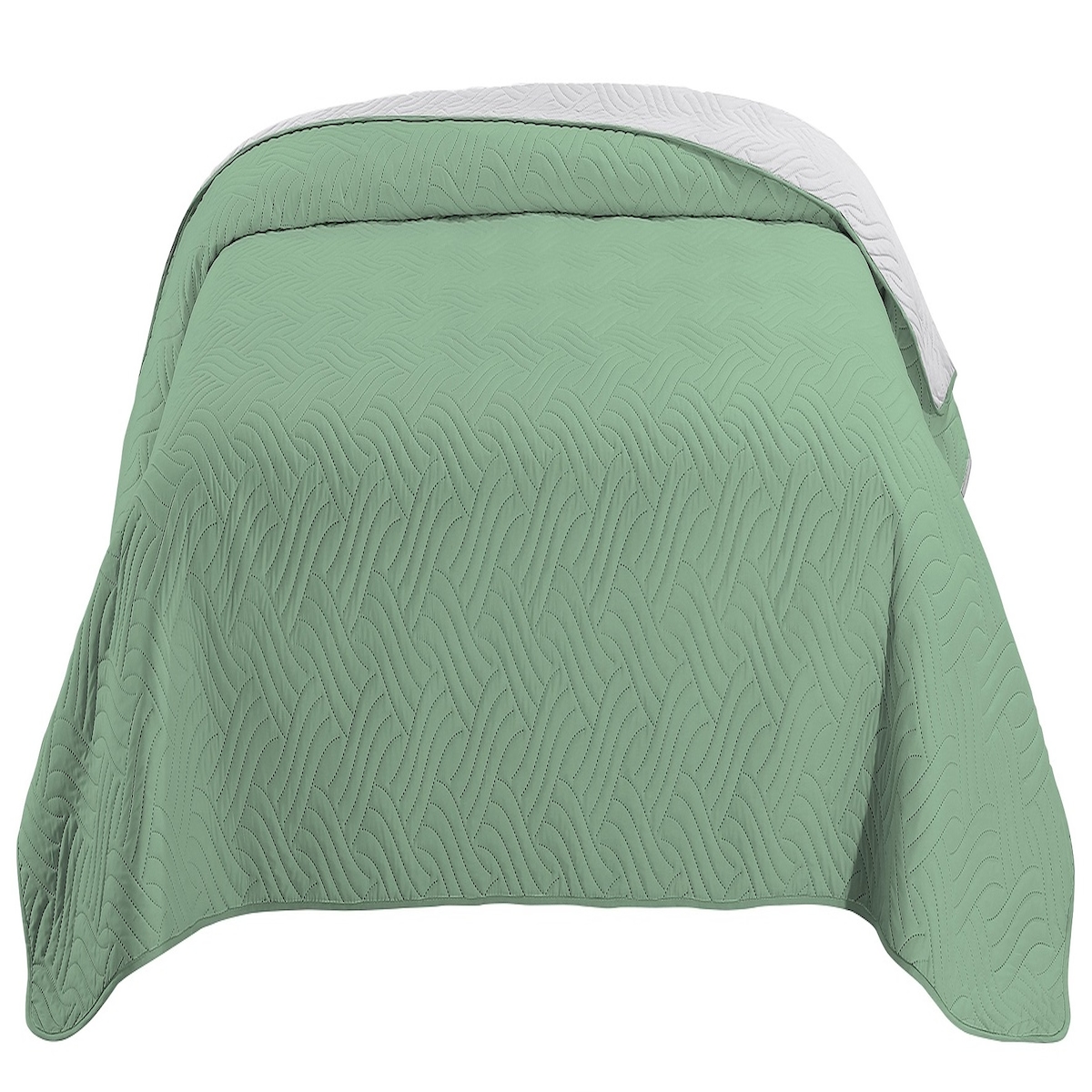 wometo Tagesdecke 220x240 OEKO-TEX - grün hellgrau Microfaser-Bezug wattiert gesteppt Wende-Design XXL Sofa Couch Bett Bettüberwurf