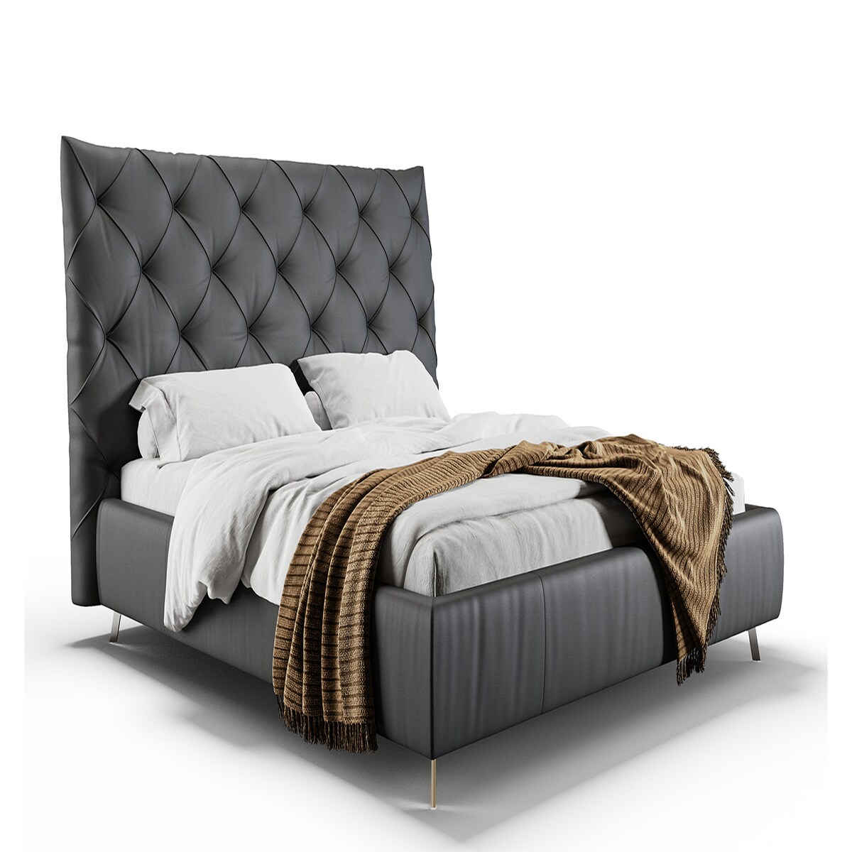 Designer Doppelbett Bett Hotel Luxus Schlafzimmer 140/160x200cm Leder Metall Neu