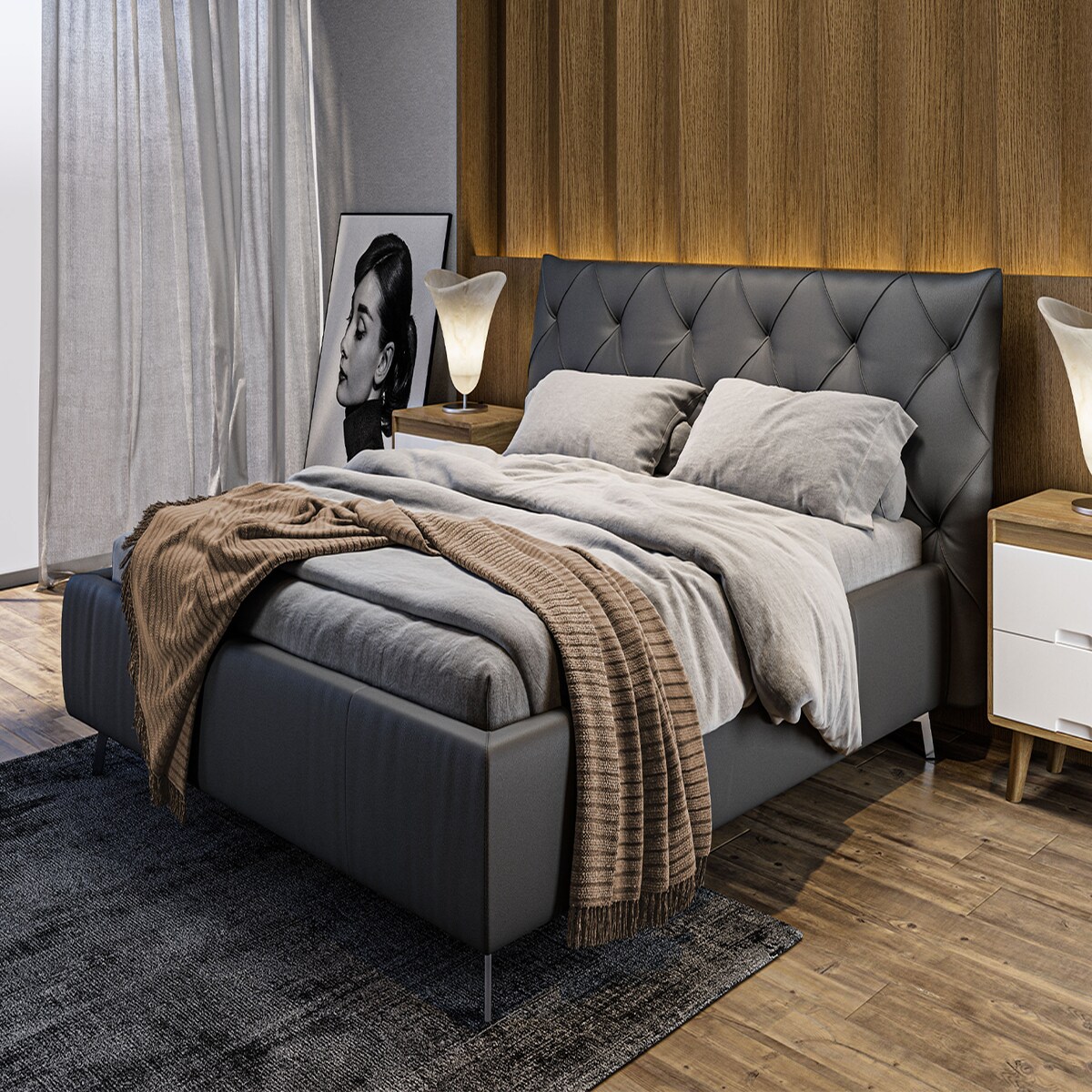 Leder Bett mit USB,Luxus Polster Betten Doppel Modernes Ehe 140/160/180 LB8821