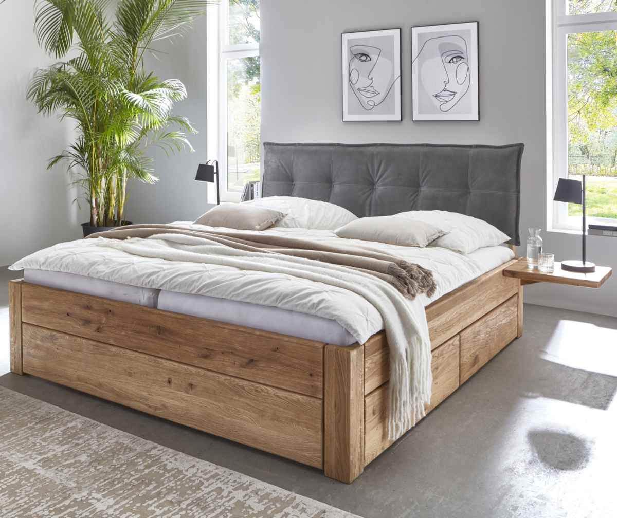 Bett Wildeiche 180x200 cm Leder Polsterkopfteil Komforthöhe mit Bettkasten