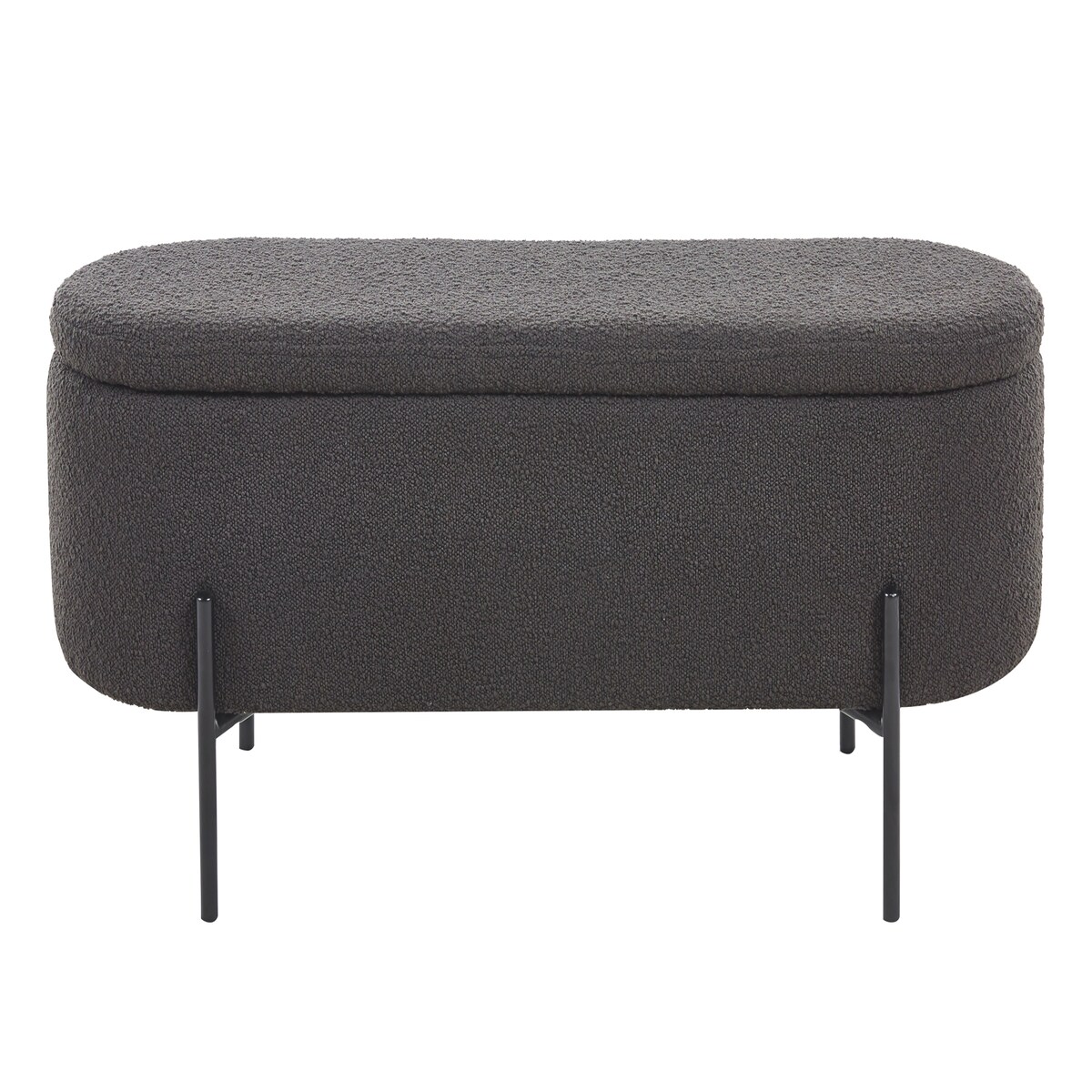 SalesFever Bettbank mit Stauraumfunktion | aufklappbar | Bezug Bouclé Stoff | Metallgestell | B 110 x T 40 x H 44 cm | anthrazit – schwarz