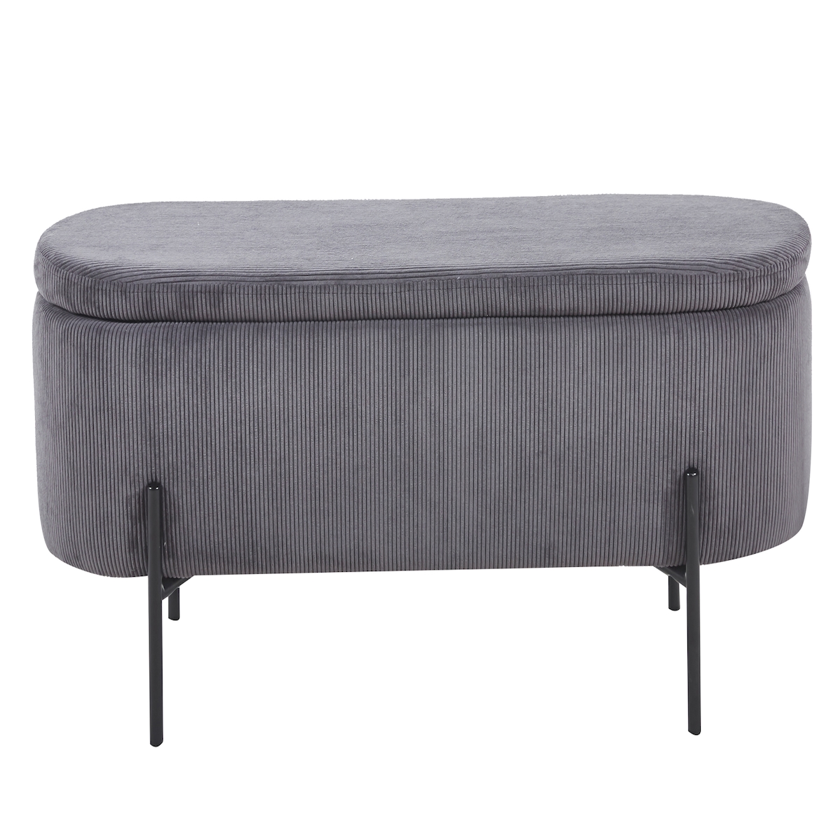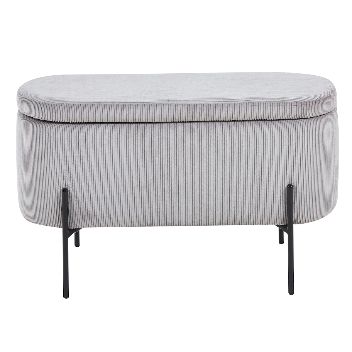 SalesFever Bettbank mit Stauraumfunktion | aufklappbar | Bezug Cord-Stoff | Metallgestell | B 110 x T 40 x H 44 cm | hellgrau – schwarz
