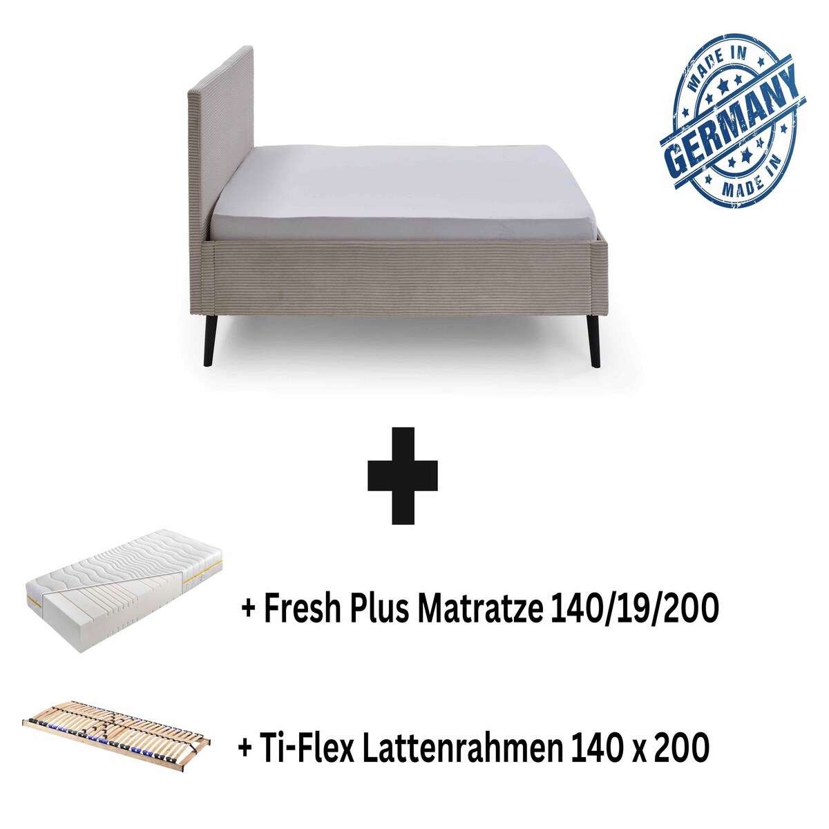 Polsterbett 140 x 200 Bettgestell Bett Doppelbett mit Kopfteil Beige Germany, Ausführung:inkl. Lattenrahmen / ohne Matratze