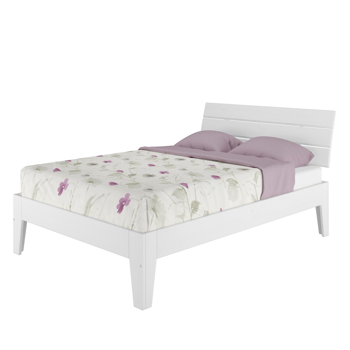 Doppelbett 140x200 Futonbett Bettrahmen Bettgestell Holz Kiefer Weiß Zubehör wählbar V-60.54-14W ohne Zubehör