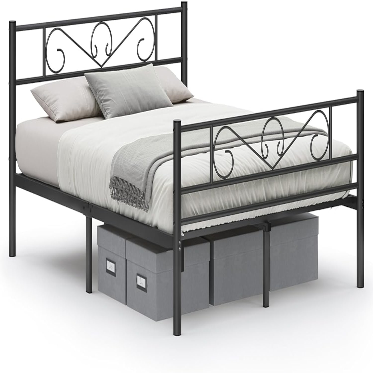 Doppelbettgestell, Bettrahmen aus Metall, passend für 160 x 200cm Matratze, Gästebett, hochwertige Stützbalken, für Erwachsene, schwarz