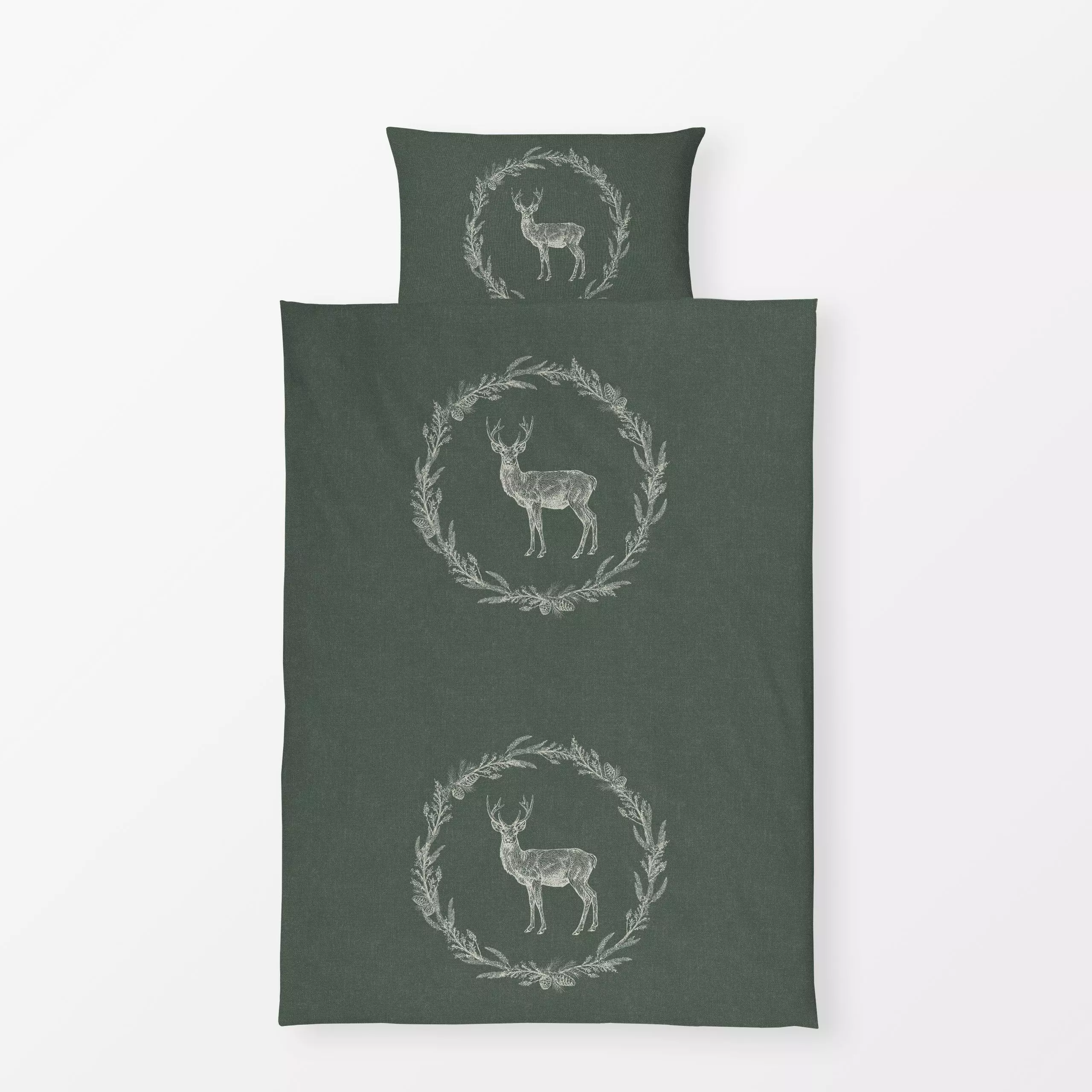 Bettwäsche Nordic Deer wreath I - Weihnachten, Pflanzen & Botanik - von „Bloomery Decor"; Tannenzapfen, Hirsch, landhaus, we...