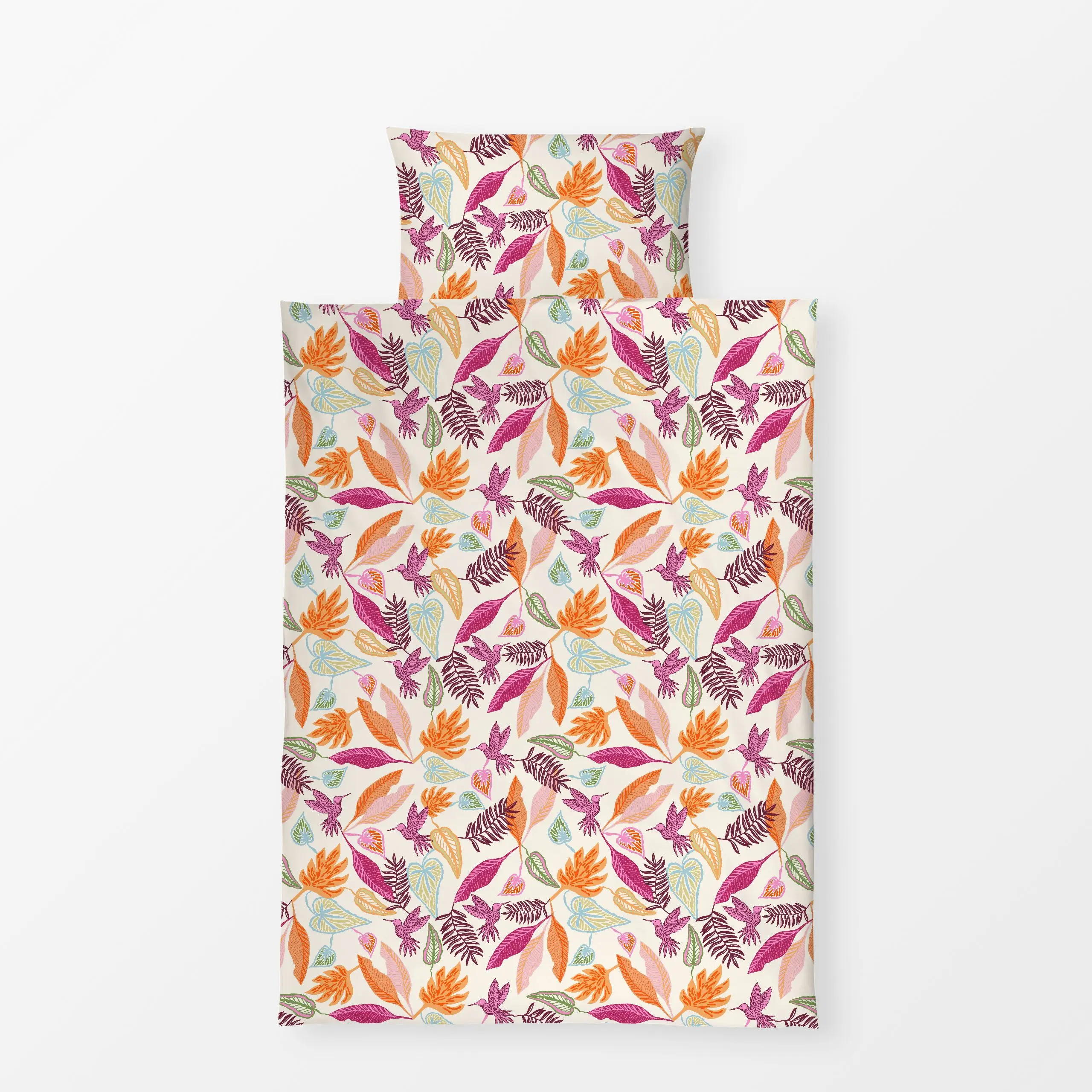 Bettwäsche Frühlingsflug - Frühling, Tiere, Pflanzen & Botanik - von „Patries Elisabeth"; Farn, Bananenpalme, Vogel, fruehli...