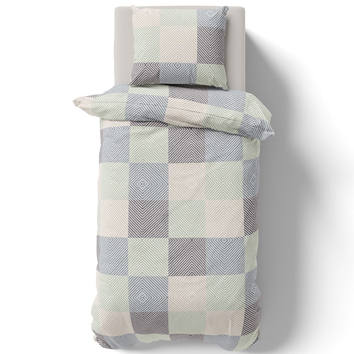 Bettwäsche 135x200 cm Karo geometrisch grafisch petrol grau schwarz Microfaser