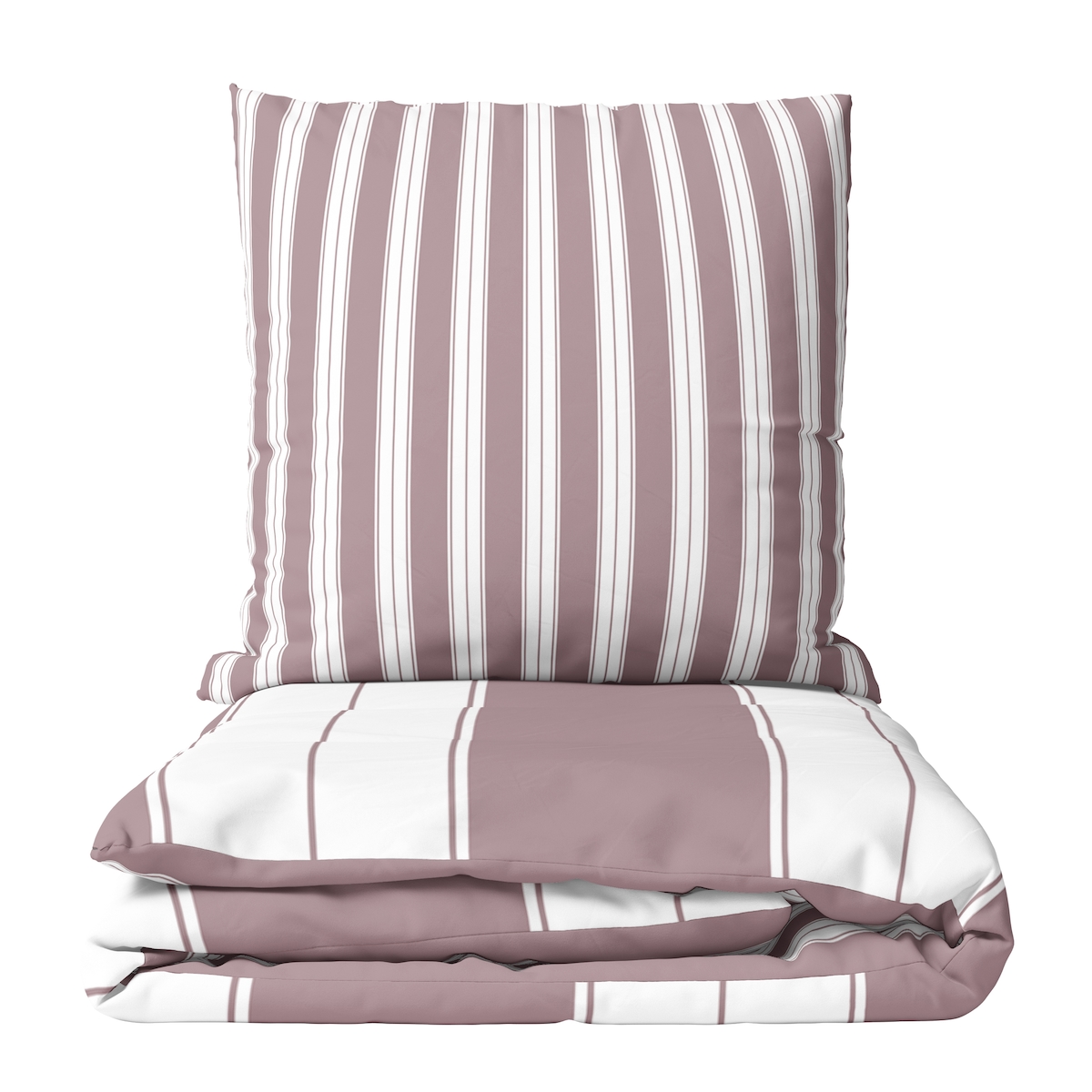 Baumwolle Bettwäsche 135x200 cm Rosa Grau gestreift Stripe Damast Bettbezug PolyBaumwolle Wendebettwäsche 4 teilig