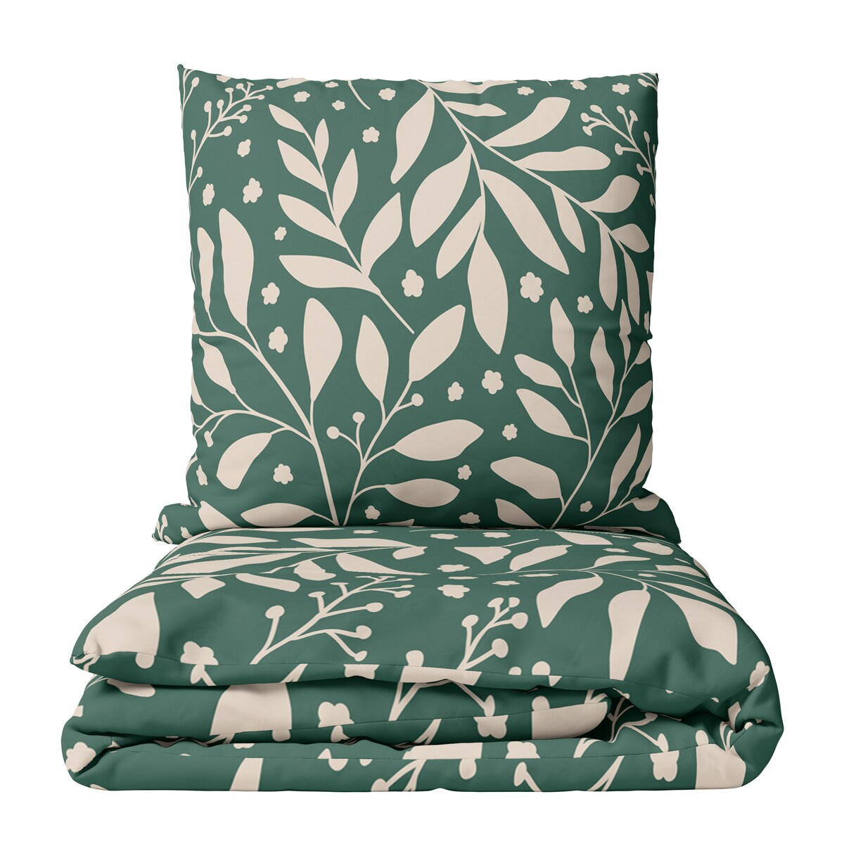 Leonado Vicenti Bettwäsche Set 135x200 cm Baumwolle Jersey Dunkelgrün Beige Geblümt mit Reißverschluss, 4 teilig
