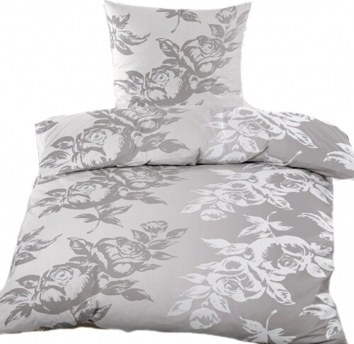KH-Haushaltshandel 2-tlg. Biber Winter Bettwäsche 135 x 200 + 80x80 cm, Baumwoll Mischgewebe, grau weiß, Blütenmuster
