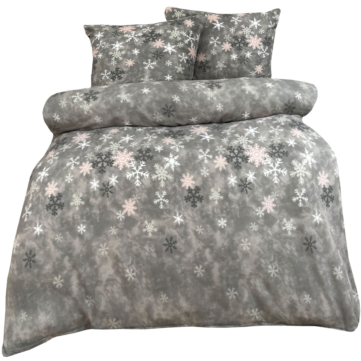 Leonado Vicenti Bettwäsche Thermofleece 220x240 + 2x 80x80 cm grau rosa Schneeflocken mit Reißverschluss / 3 tlg.