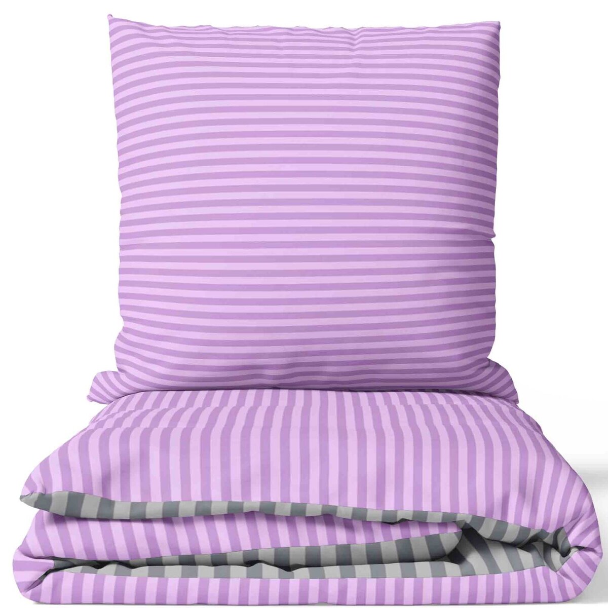 Bettwäsche Set 155x220 cm in Lila Grau mit Streifenmuster und Reißverschluss aus PolyBaumwolle – Wendebettwäsche