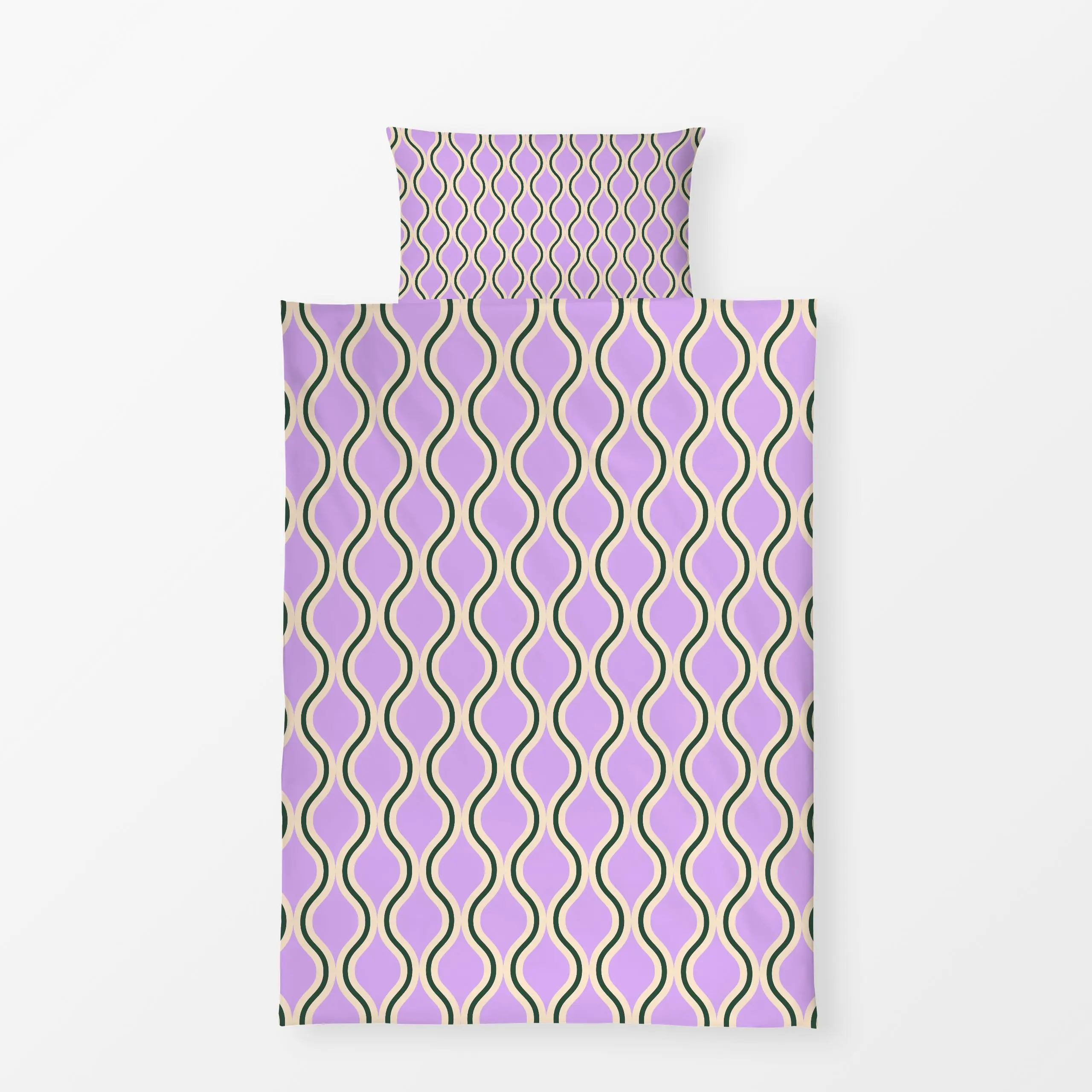 Bettwäsche Wellen Fliesen lila - Symbole & Muster - von „Julia Schumacher"; flieder, dunkelgruen, Fliesenmuster