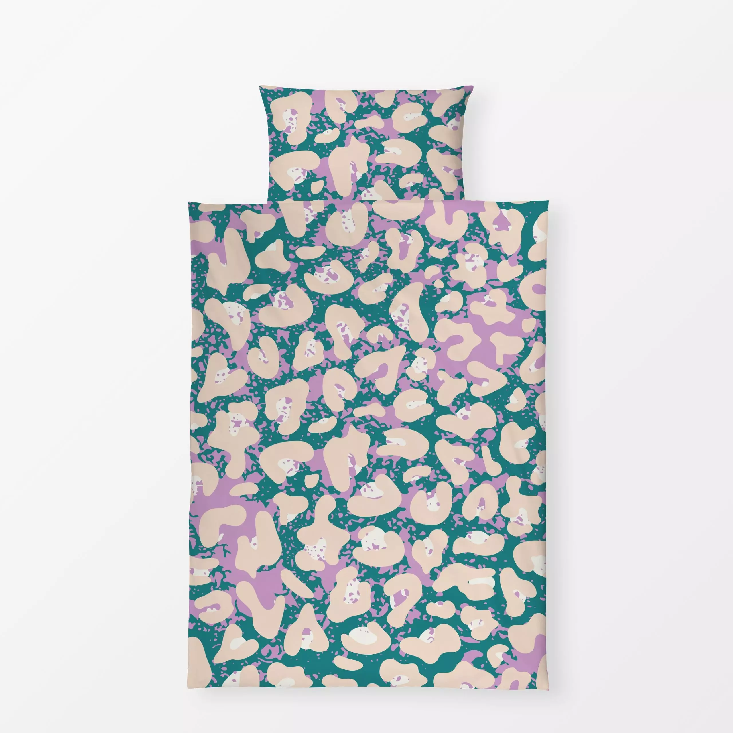 Bettwäsche Leo Grün Lila - Sommer, Symbole & Muster - von „moDeern Design Studio"; Sommer, Leo, Leopard, lila, farbenfroh, c...