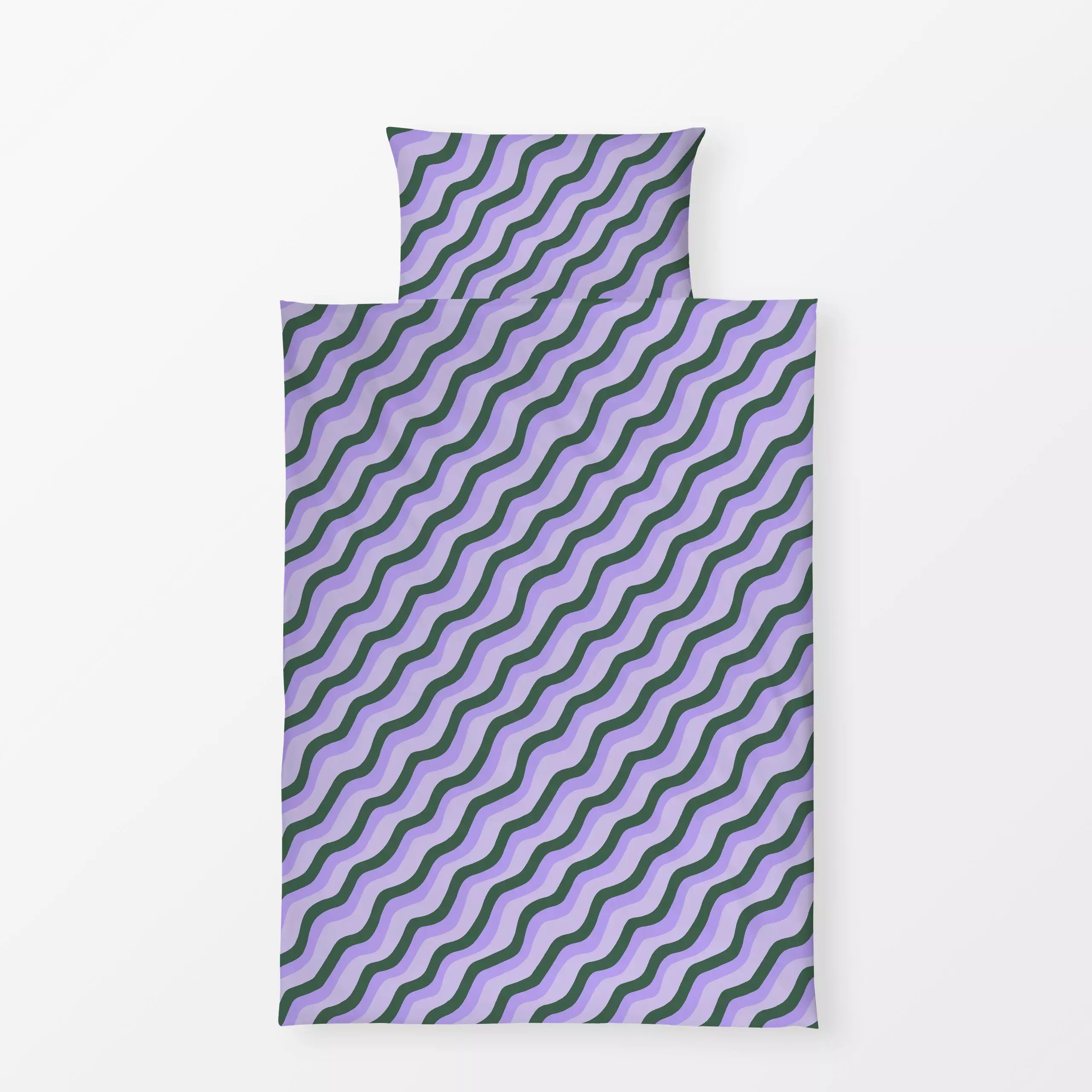 Bettwäsche Wellen Diagonal Flieder Grün - Symbole & Muster - von „Studio Kesse"; Linien, Streifen, wellen, lila, diagonal, g...