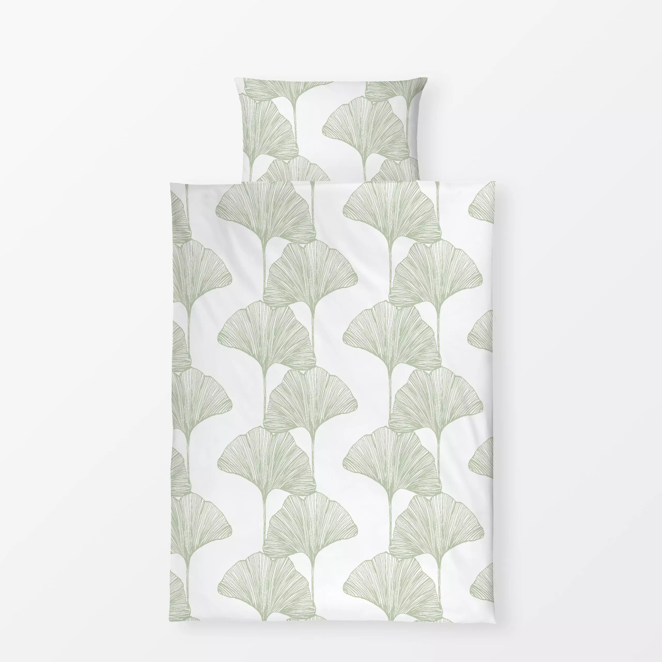 Bettwäsche Ginko Grün - Blumen & Florales, Herbst - von „Perunoto"; Natur, Zeichnung, skandinavisch, Herbst, ginko, minimali...