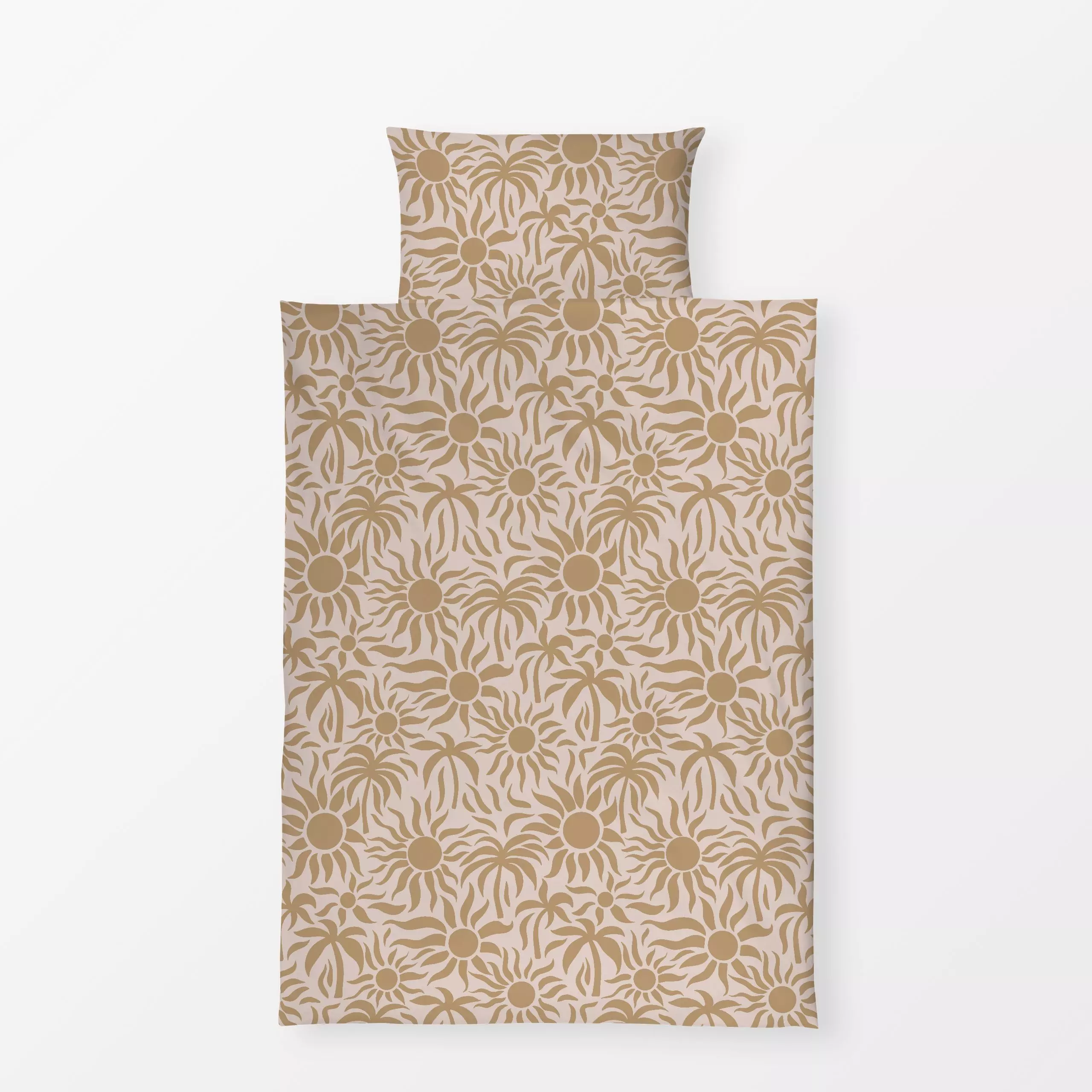 Bettwäsche Sonne und Palmen Beige - Natur & Landschaft, Pflanzen & Botanik - von „Studio Kesse"; Palmen, Sommerblumen, Sonne...
