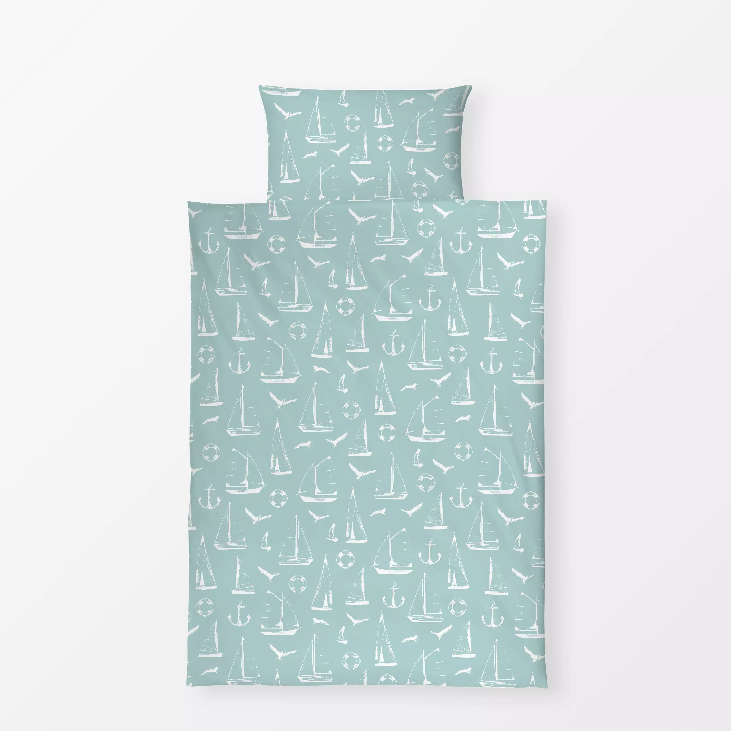 Bettwäsche Segelboot Silhouetten Türkis - Natur & Landschaft - von „Katrin Graff"; Möve, Urlaub, maritim, Segelboot, Sommerl...
