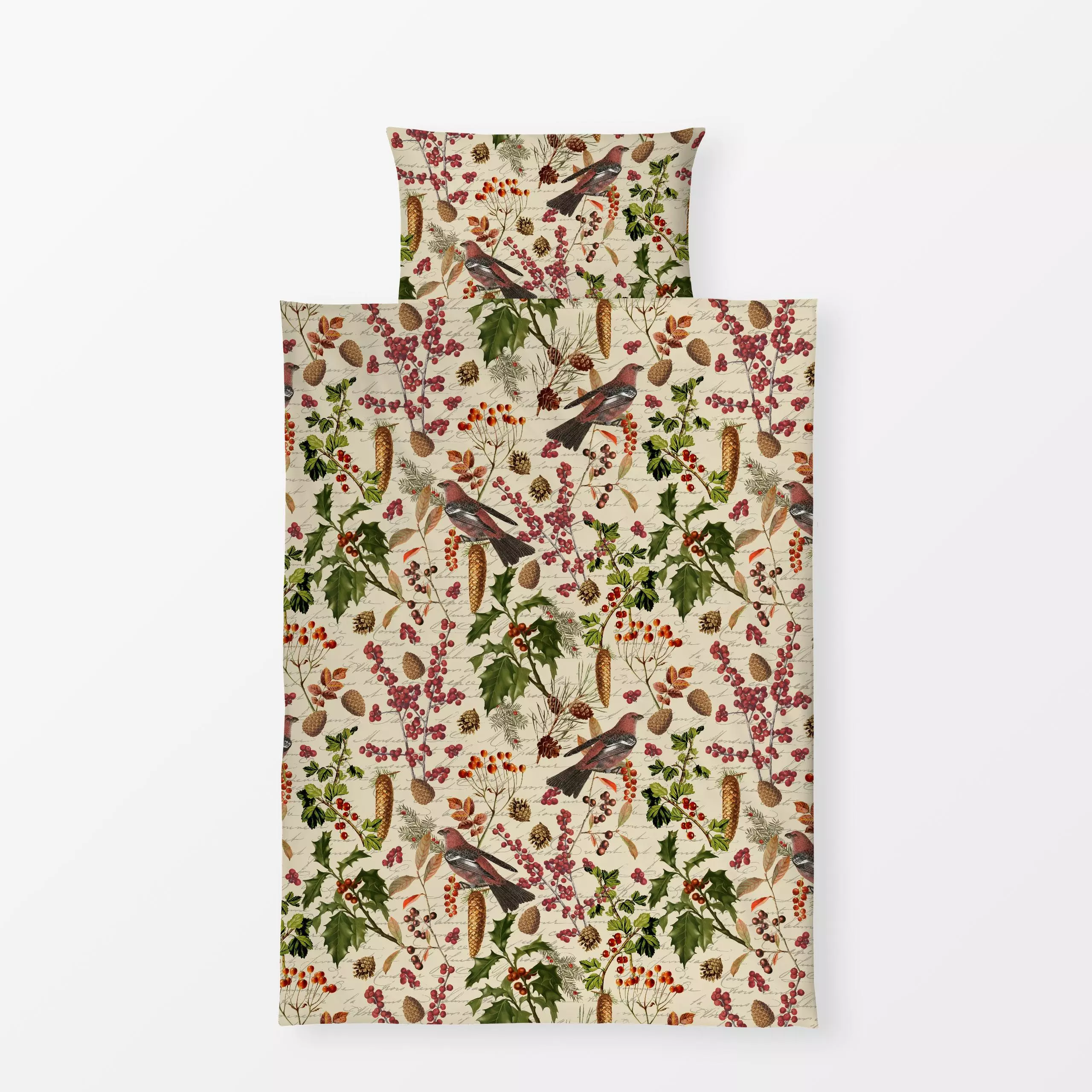 Bettwäsche Wintervögel und Beeren - Herbst, Natur & Landschaft, Tiere - von „Andrea Haase"; Natur, Beeren, Vogel, Tannenzapf...