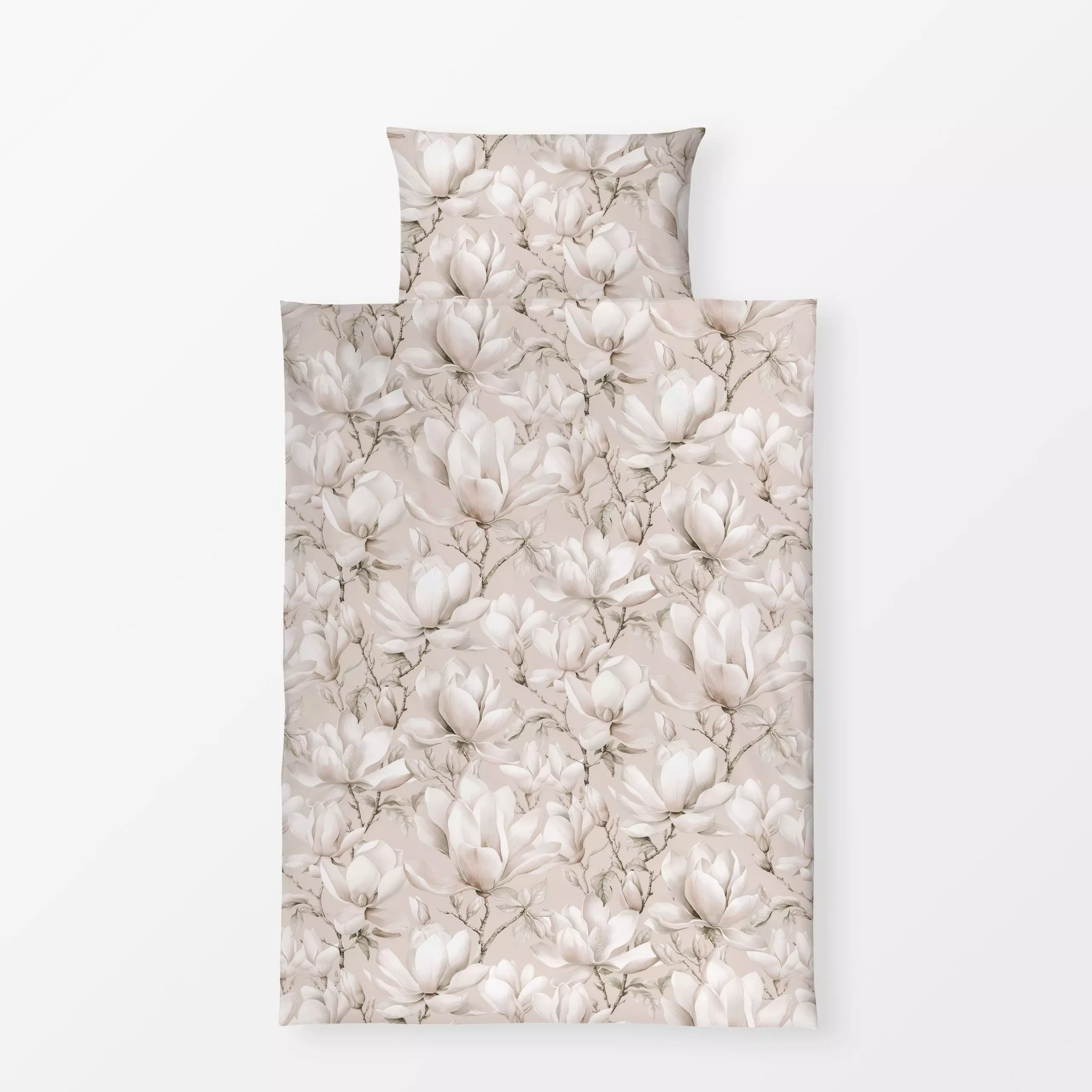 Bettwäsche Magnolia Floral Nostalgia - Blumen & Florales, Pflanzen & Botanik - von „Andrea Haase"; Natur, beige, botanik, he...
