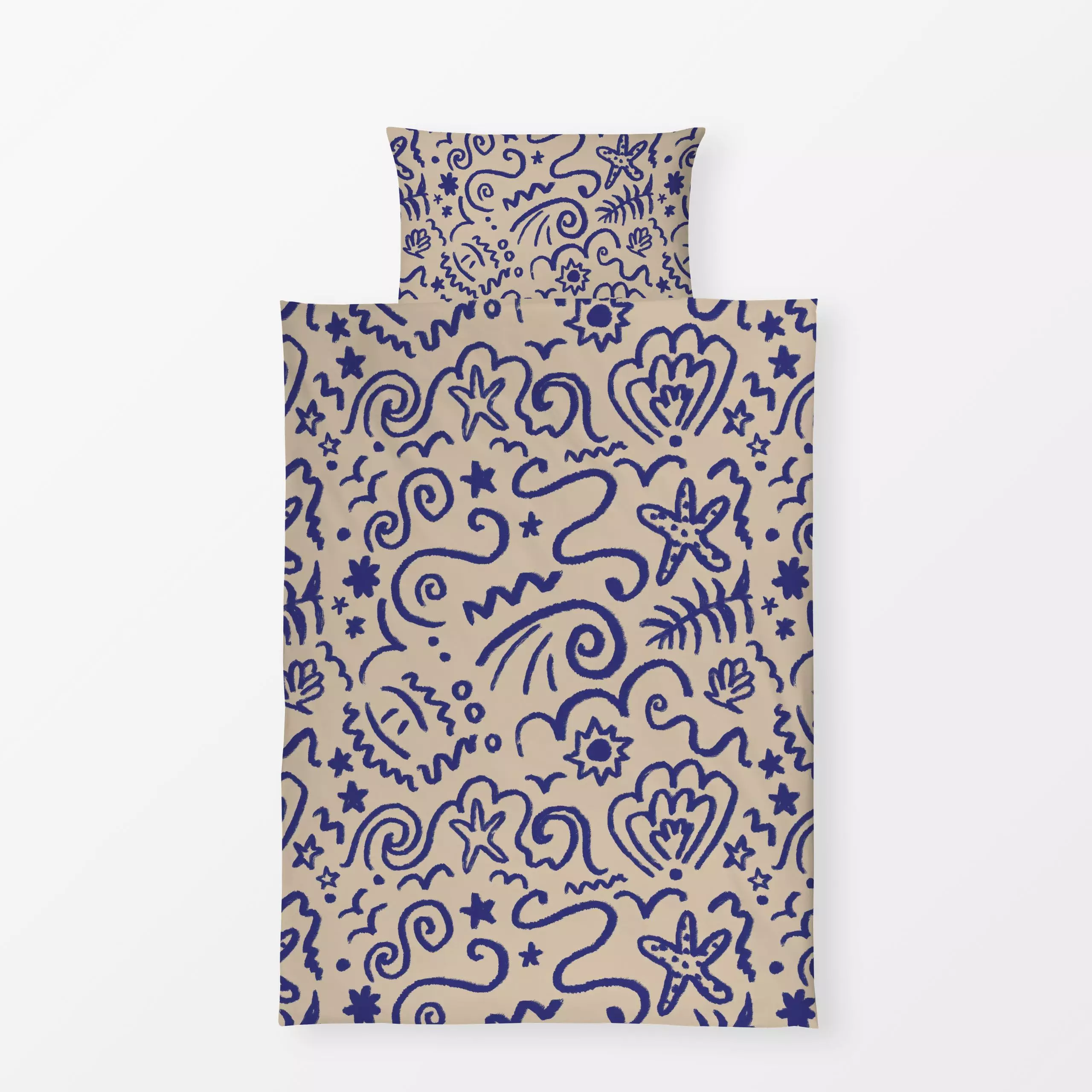 Bettwäsche Strandtag Blau & Beige - Natur & Landschaft, Sommer, Reise - von „Studio Dolci"; Muster, Meer, Strand, beige, wel...