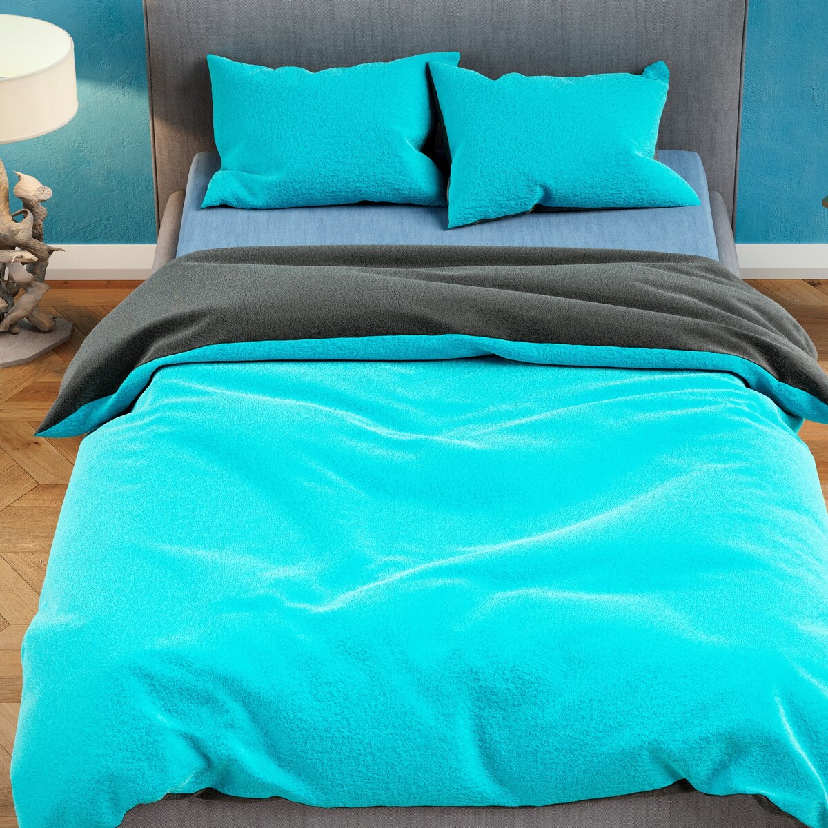 4 teilig Thermofleece Bettwäsche 135 x 200 cm türkis grau anthrazit Winter Set