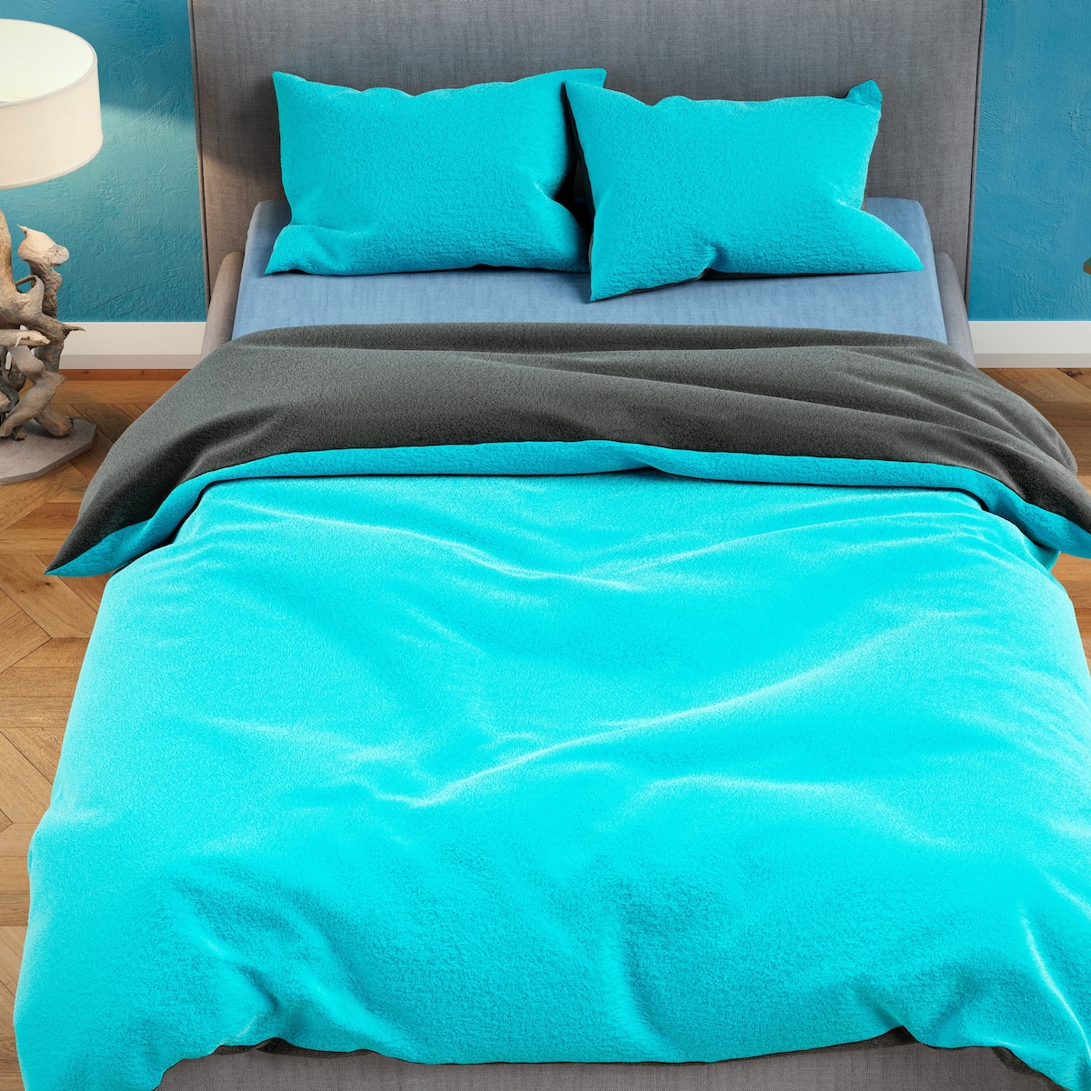 Teddy Plüsch Bettwäsche 200x220 cm Winter Uni türkis anthrazit Flausch Fleece
