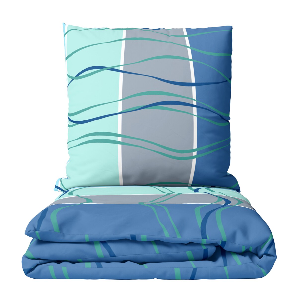 Mikrofaser Bettwäsche Set 135x200 cm Bettbezug Petrol Blau Türkis Wellen Gestreift mit Reißverschluss 2 teilig